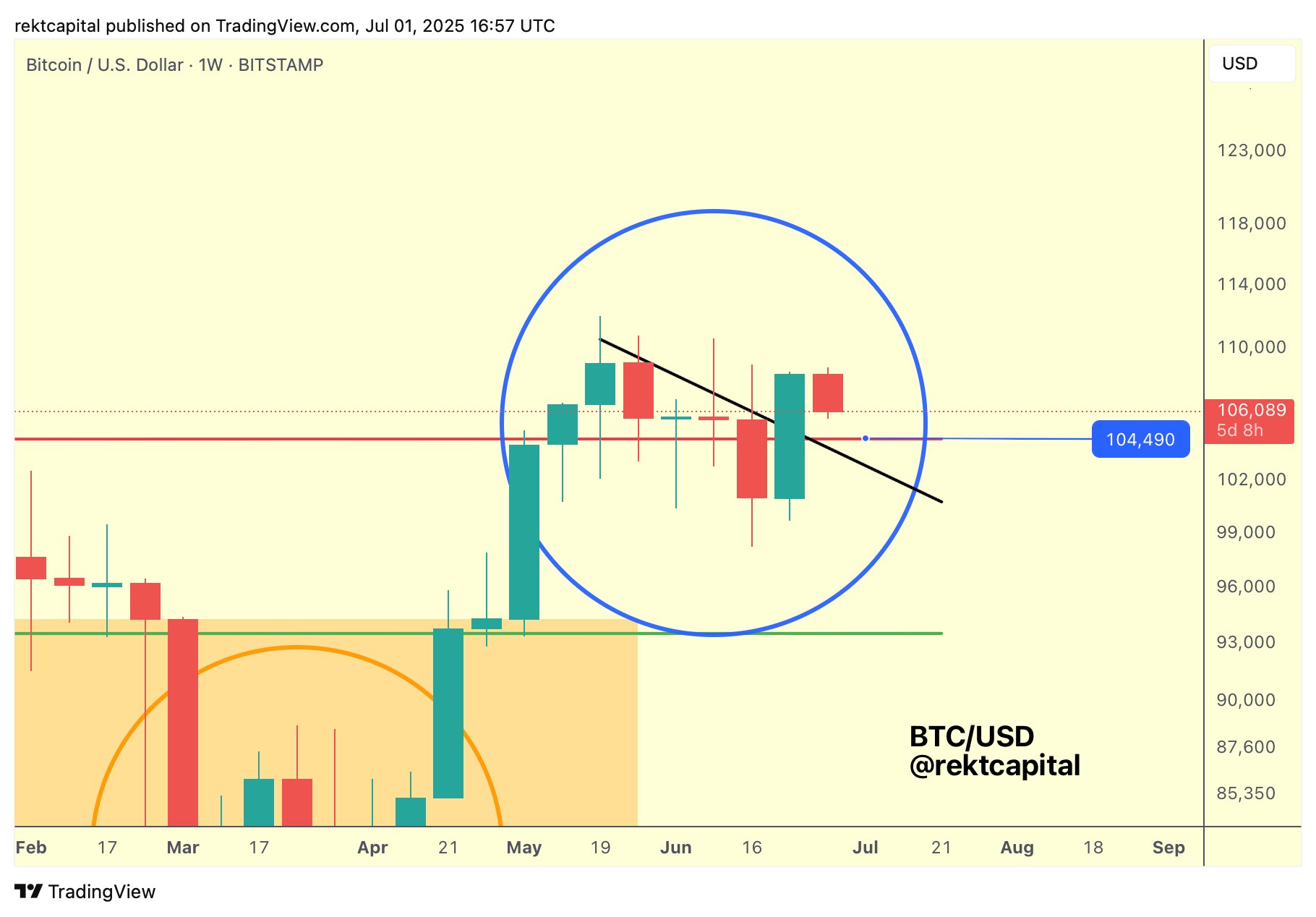Rekt Capital explained that Bitcoin was in the process of breaking out of a multi-week downtrend that had been ongoing since mid-May.
