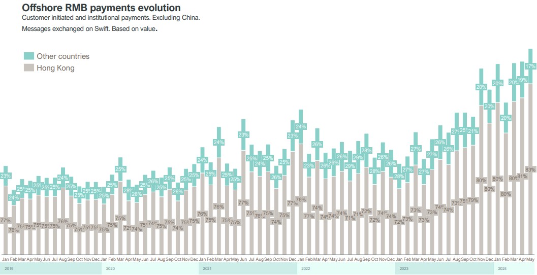 However, a stablecoin pegged to the CNH may not match global volumes, argues Chu, as the offshore yuan market is “relatively small” compared to the onshore market.