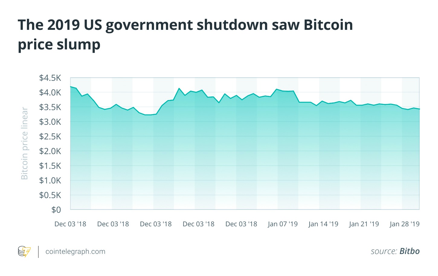 Then, Bitcoin’s price did fall around 16%, to $3,500 from around $4,200. But after the government reopened, Bitcoin’s price went on a tear, soaring to $13,000, an almost 300% increase, in just five months.