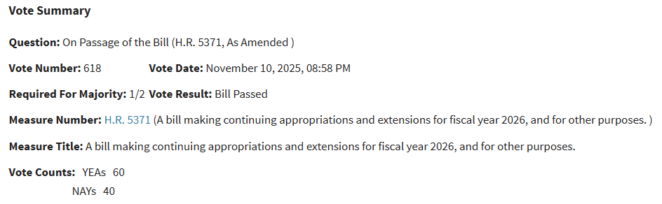 Related: Senate approves funding bill to reopen US government, awaits vote in House