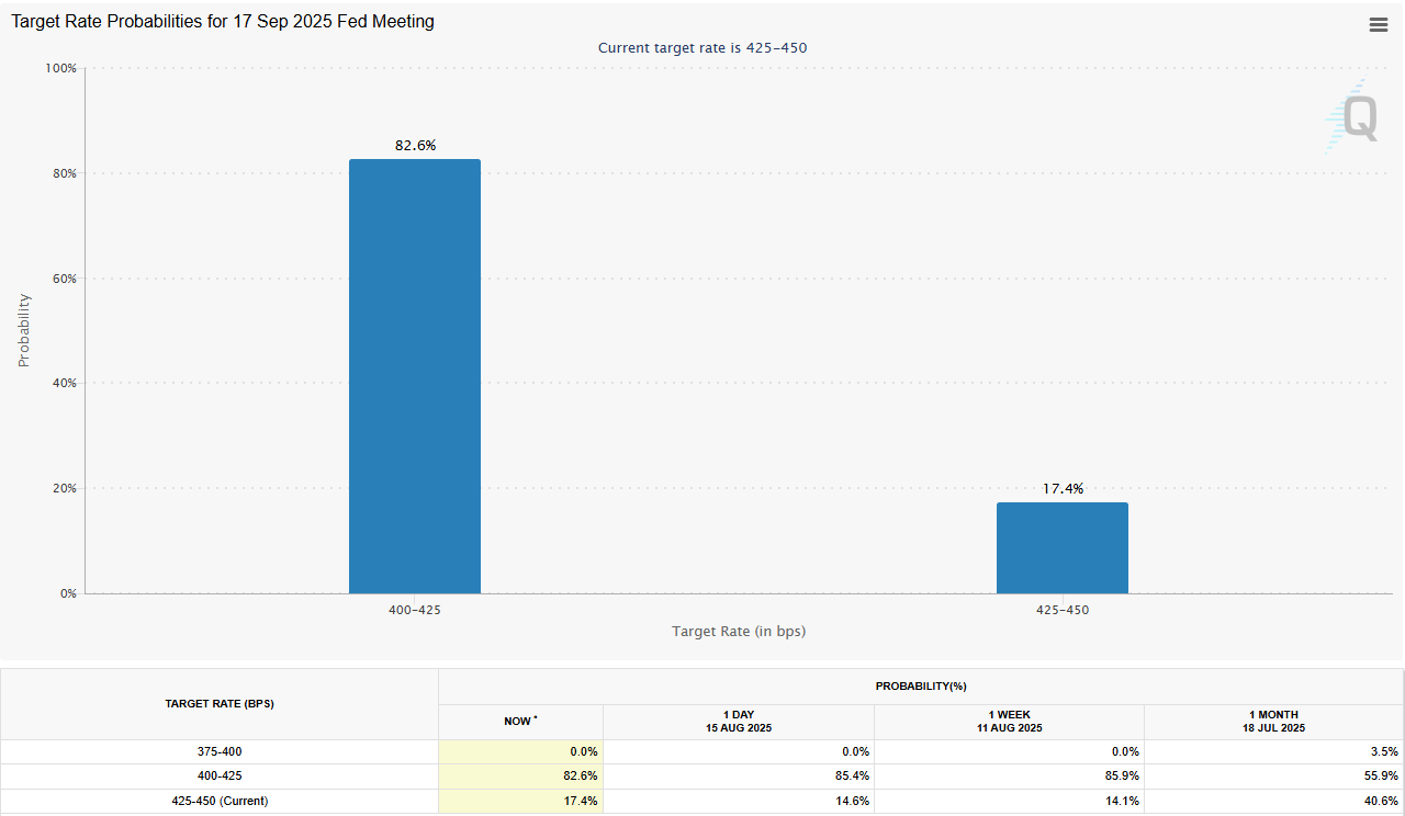 Markets are pricing in an 82% chance that the Fed will keep interest rates steady during the next Federal Open Market Committee meeting on Sept. 17, according to the latest estimates of the CME Group’s FedWatch tool.