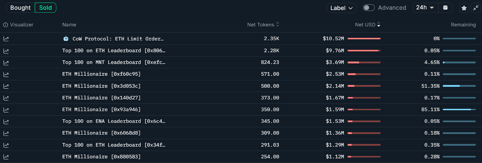 Another top 100 Ether trader, wallet “0x34f,” also sold $1.29 million worth of Ether, and numerous other whales sold millions worth of the world’s second-largest cryptocurrency.