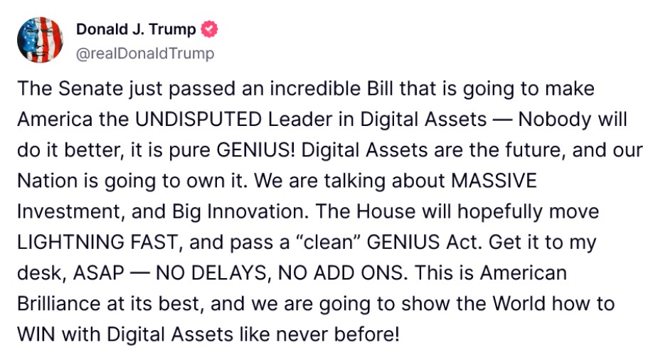 Brisov: I told you two months ago that it would pass the Senate because it was already evident that the momentum had shifted. The STABLE proposal was deeply unpopular. GENIUS, on the other hand, was widely discussed and struck a better balance.