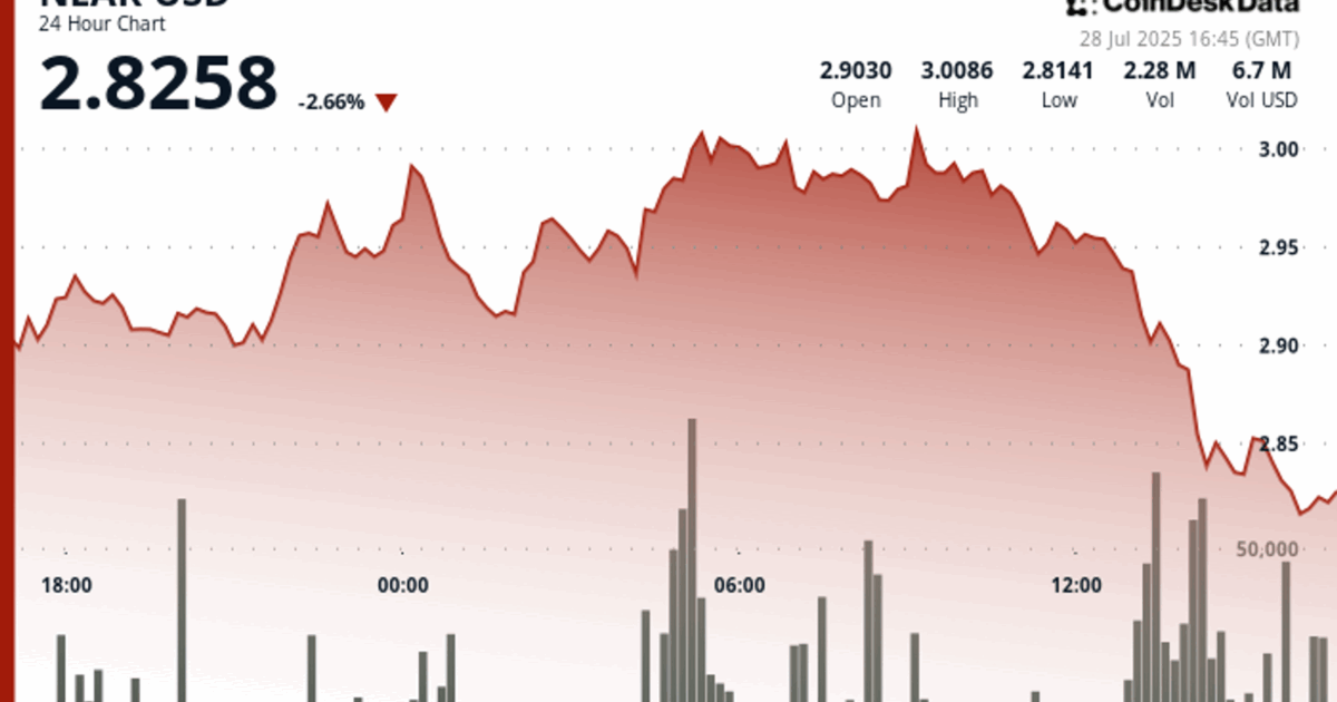 Multiple high-volume sell-offs throughout the final hour, especially at 13:21, 13:32, and 14:04 UTC, suggest persistent bearish momentum. Trading activity dropped sharply in the final minutes, hinting at short-term market exhaustion and potential sideways consolidation near the $2.89 level. With NEAR sitting at the lower end of its intraday range, traders may look to broader macro signals before determining the next move.