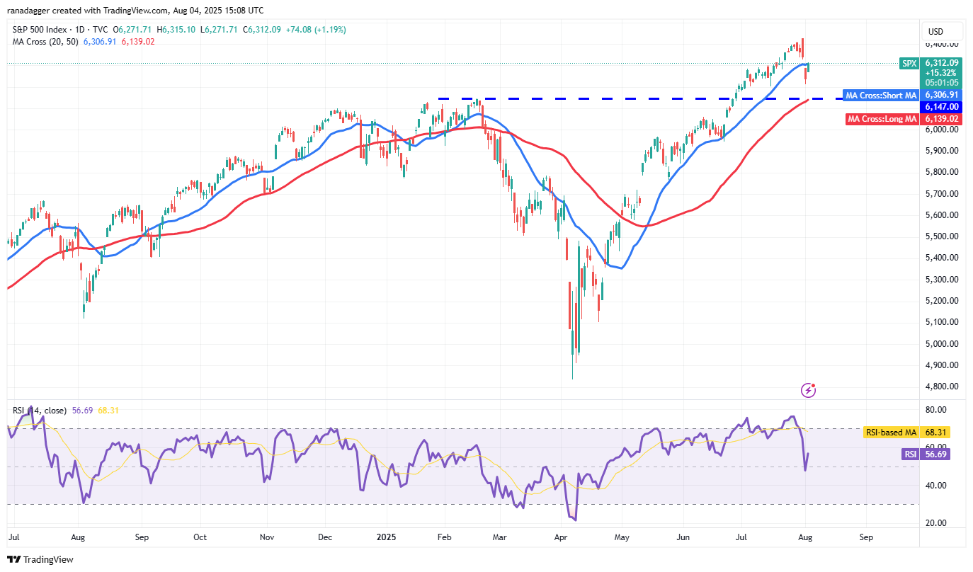 Selling continued on Friday, pulling the price below the 20-day simple moving average (6,306). The bulls are trying to get back into the driver’s seat by pushing the price back above the 20-day SMA on Monday. If they succeed, the index could retest the all-time high of 6,427.