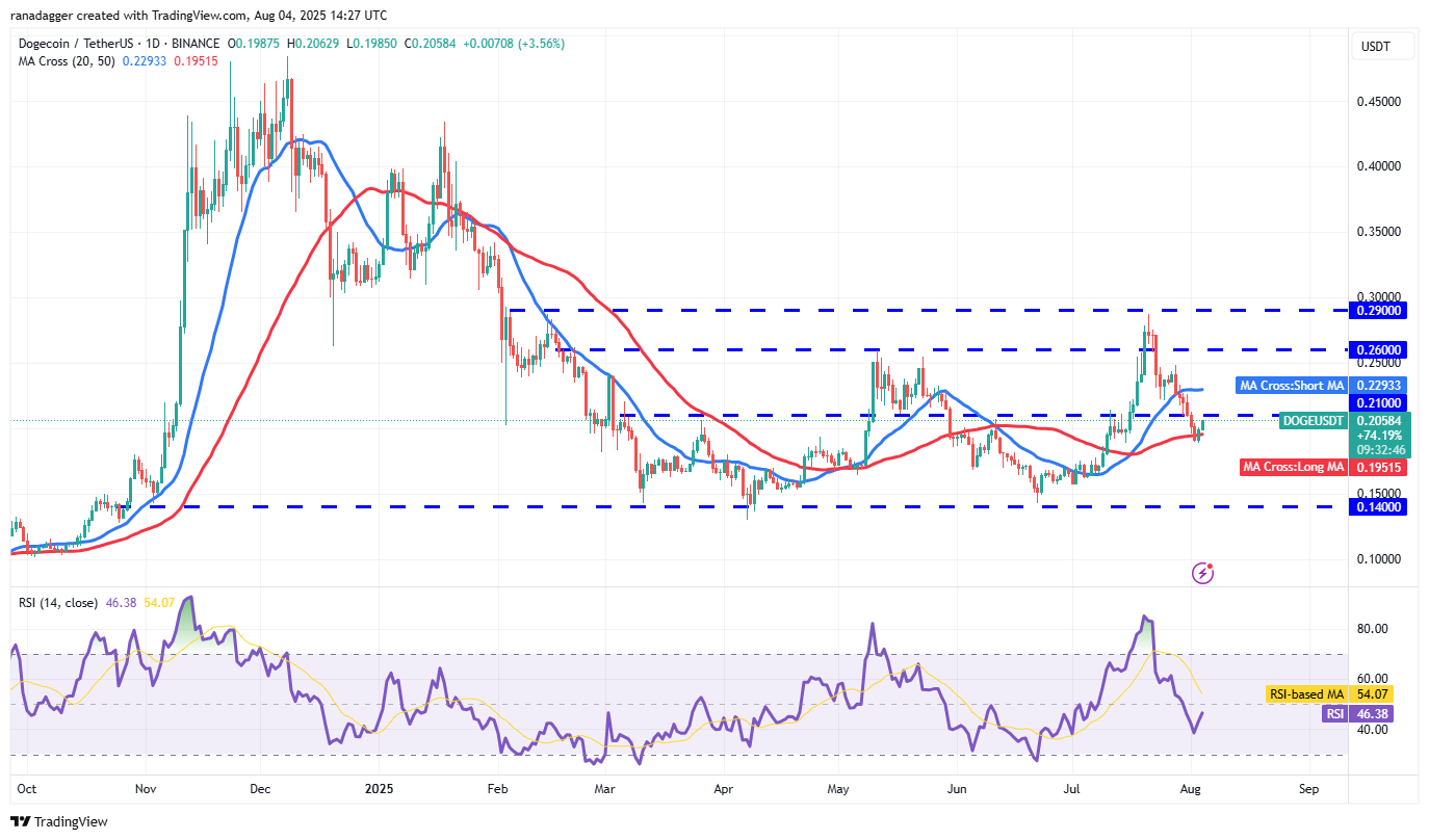 The first sign of strength will be a close above the 20-day SMA. The DOGE/USDT pair could then rise to $0.26 and eventually to $0.29. Sellers are expected to fiercely defend the $0.29 level.